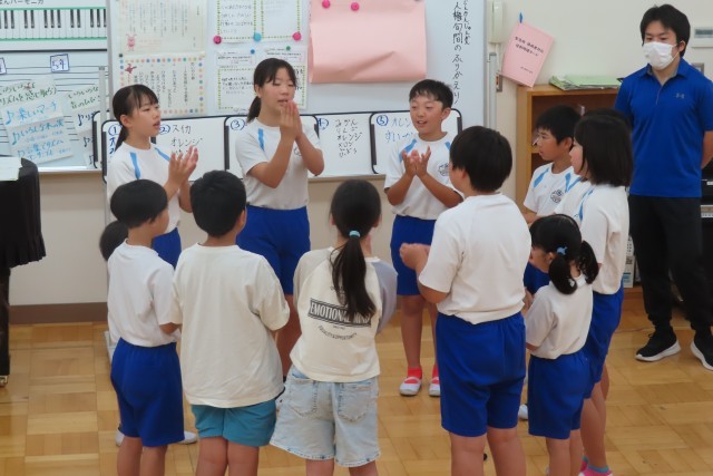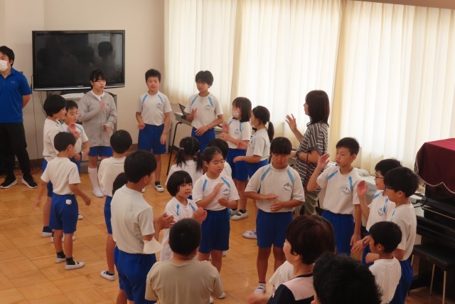 最後にみんなで「ありがとうの花」(美九里西小の人権ソング)を手話付きで歌いました。美九里西小の児童は、こういう優しくて心温まる歌がとても上手です。表情豊かで、気持ちがこもっていて、日頃からそんな優しい気持ちで過ごしているからこそ、歌のメッセージがよく伝わってきて、じーんと心にしみてきます。