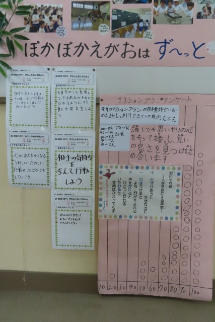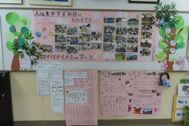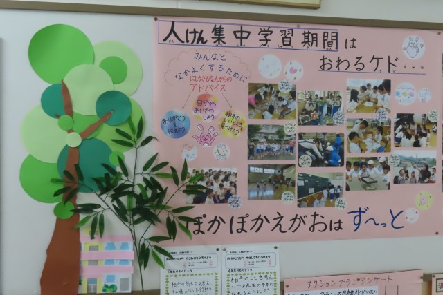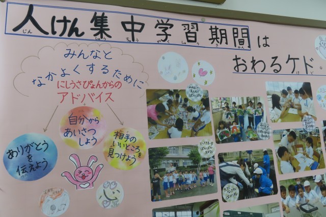 西うさぴょん&教務主任による掲示板がリニューアルされました。人権集中学習旬間の取組の振り返りです。児童会本部役員を中心にしてみんなで約束したとおり、これからも、ぽかぽかえがおがずっと続くようにみんなで仲良く力を合わせて過ごします!