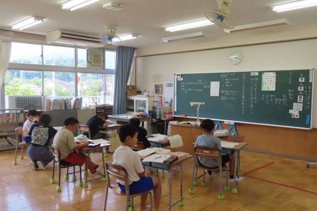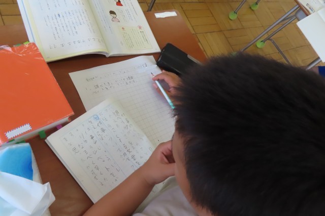 教室ではちょうど児童のつぶやき(嘆き)が聞こえてきました。「むずかしいなあ」「何て書いたらいいのか、わからないよ」と。「仕事のくふう、見つけたよ」自分の興味ある仕事について様々な工夫を調べ、文の組み立てをもとに、友達に報告する文章を書き始めたところでした。書きたい内容はあるけれどそれを文章にするのが、分かりやすく友達に伝える文章にするのが難しい。でも、そこをあきらめないで粘り強く考えて、まずは書き出してみることができた3年生。力がつくかどうかの分かれ道に、ちゃんと自分で力をつける道を選びました。