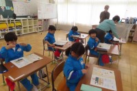 1年生の教室からは毎朝、元気な校歌の歌声がきこえてきます。5年生がプレゼントしてくれた校歌の歌詞カードを大切に使ってだんだんと歌えるようになりました。「5ねんせいがプレゼントしてくれたから!」そうやっ...