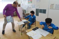 「うたに あわせて あいうえお」教科書にかかれているものをリズムよく楽しそうに音読したあとは・・・「ここでは」自分たちオリジナルの作品をつくって楽しみます。そこで先生が参考に見せてくれたのは2年生の1...