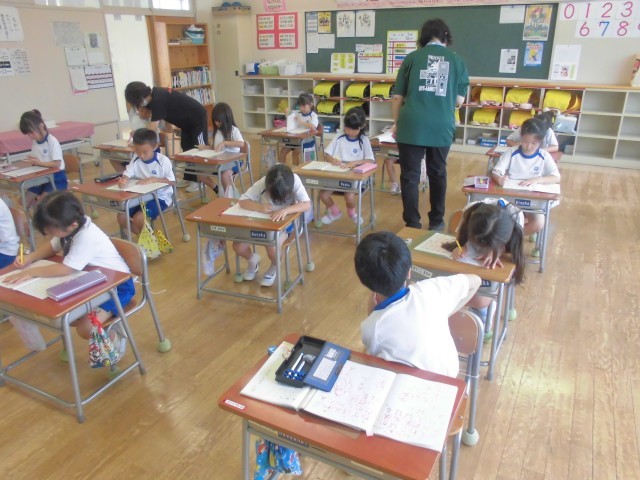 2学期の終業式です。とても元気のいい校歌でした。校長から、児童会から、生徒指導担...