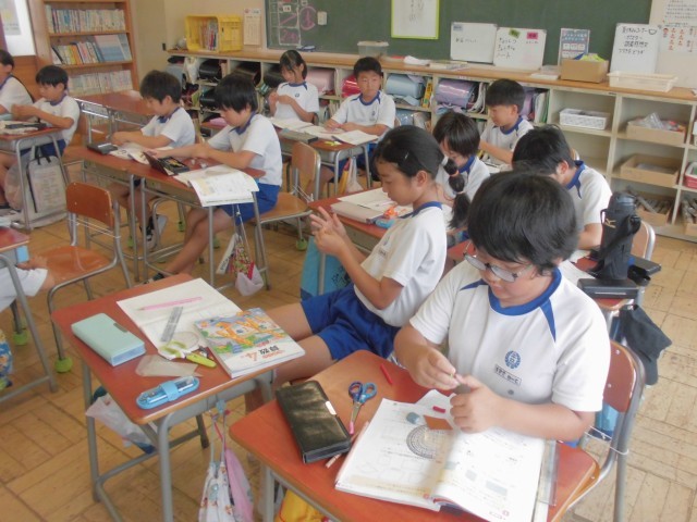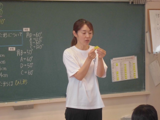 7月16日(水)4年生 算数 公開日 2025/07/16 更新日 2025/07/16 できごと 実際に折り紙を折って、切り取った図形を見ながら考察していきます。実物が目の前にあるのは分かりやすいし、ノートにも貼っておけます。 +5