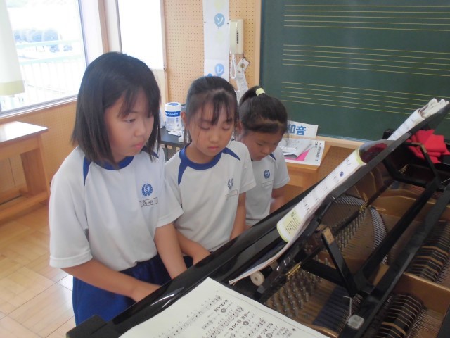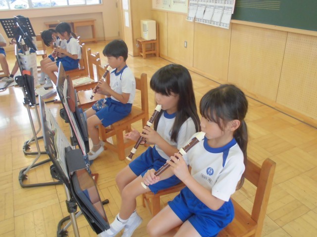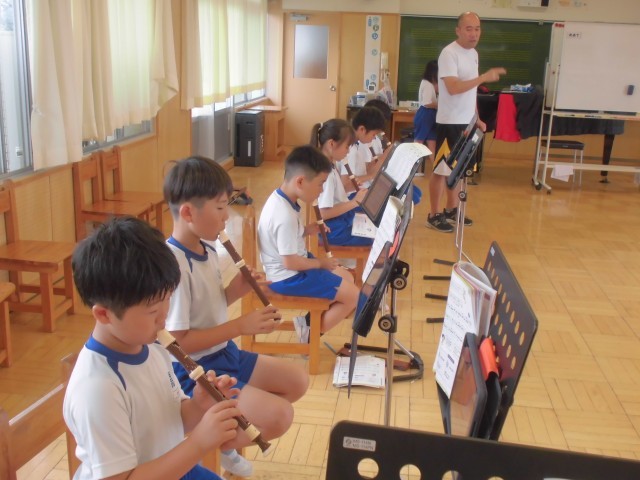 7月16日(水)3年生 音楽 公開日 2025/07/16 更新日 2025/07/16 できごと 先生が指揮、子どもたちが順番に伴奏を担当して、リコーダーの特訓です。3年生でリコーダーはしっかりと押さえておきたい技能です。 +7