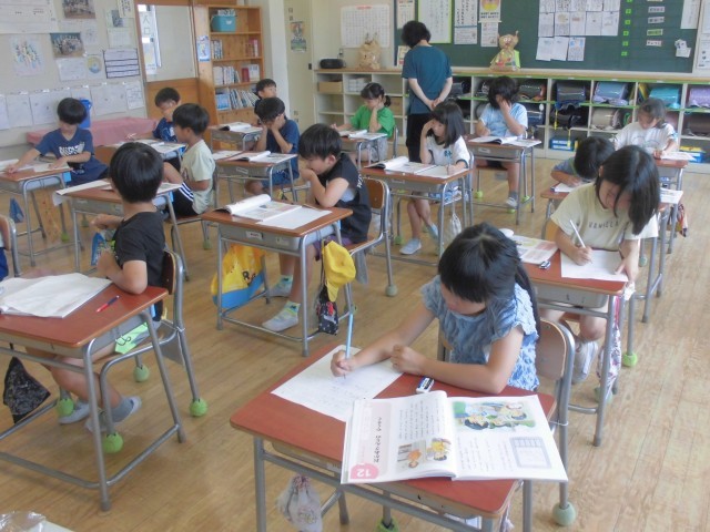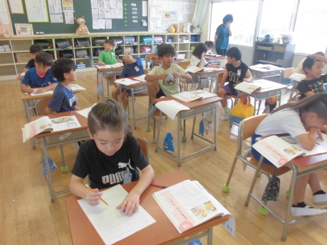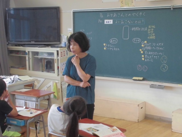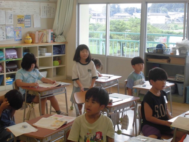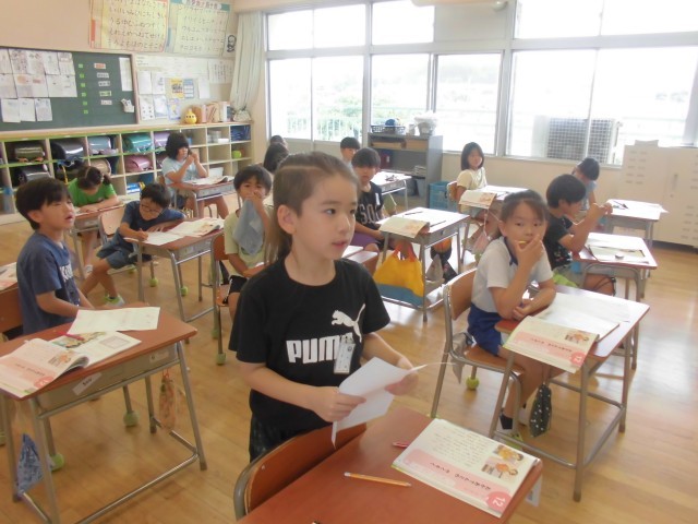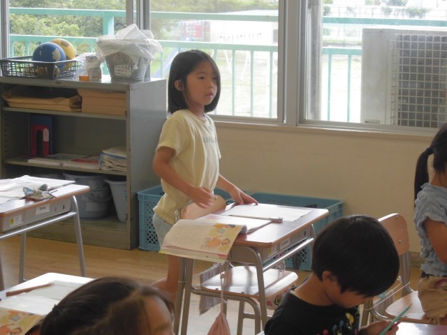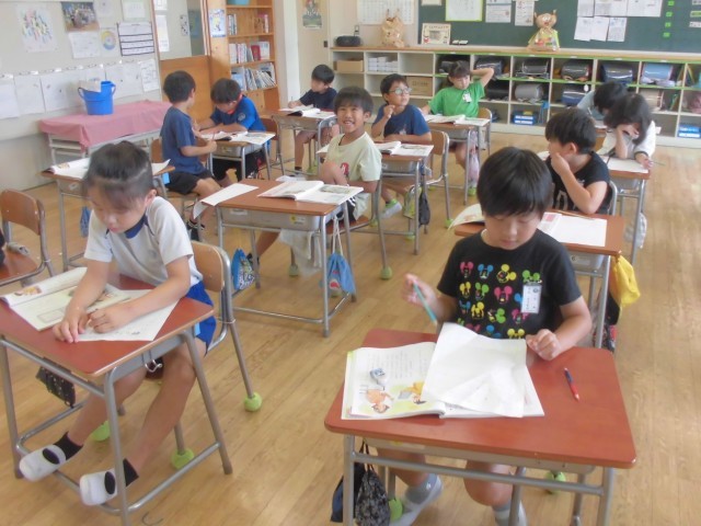 自分の意見をしっかりとワークシートに書いてから、先生の問いに次々に答えていきます。