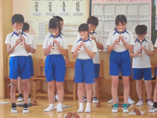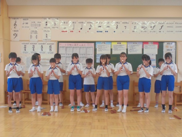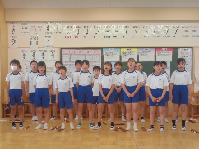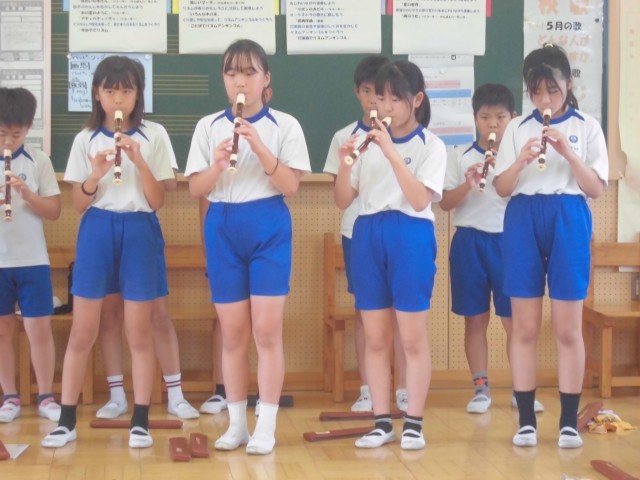 7月17日(木)5年生 ミニ音楽発表会 公開日 2025/07/17 更新日 2025/07/17 できごと 4~6年生が1学期の音楽学習まとめのミニ発表会をしました。5年生は、リコーダー「小さな約束」と合唱「いつでもあの海は」を披露しました。 +6