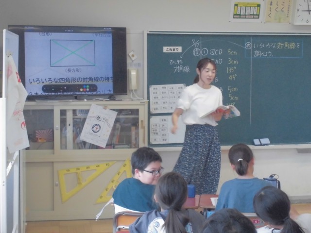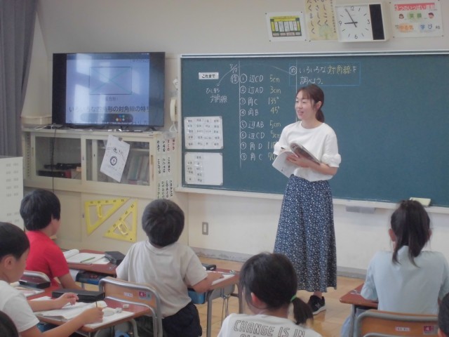7月17日(木)4年生 算数 公開日 2025/07/17 更新日 2025/07/17 できごと 「長方形の対角線は垂直に交わる」○か×か? 全員が意思表示をしながら、楽しく図形の復習をします。 +5