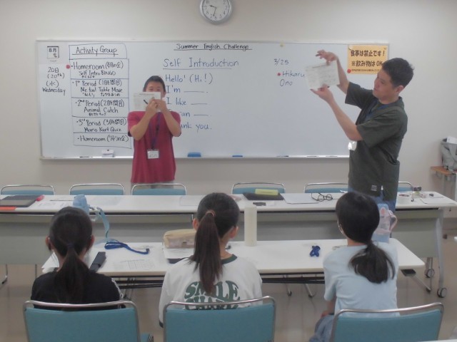 8月20日(水)サマーイングリッシュチャレンジ 公開日 2025/08/22 更新日 2025/08/22 できごと 市教委学校教育課の企画するサマーイングリッシュチャレンジに本校からも4名の児童が参加しました。市内のALTや英語の先生たちと、いろいろな英語に挑戦する3日間となりました。 +6