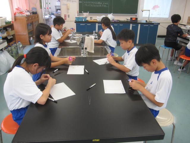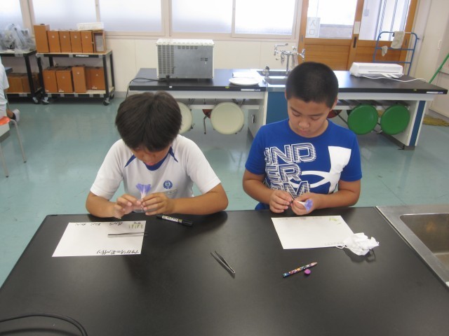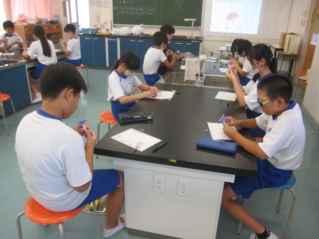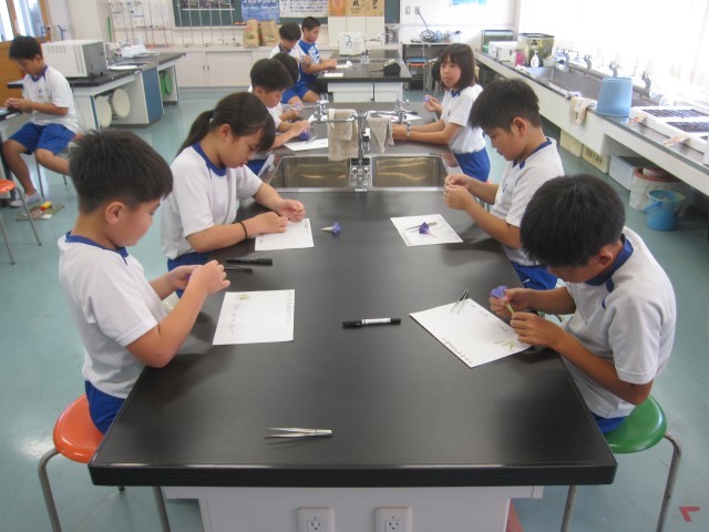 9月1日(月)5年生 理科 公開日 2025/09/01 更新日 2025/09/02 できごと アサガオの花を分解して作りを調べ、標本を作りました。 アサガオの花は、中心にめしべが1本あり、そのまわりに5本のおしべが取り巻いてついていました。おしべの元は花びらの内側についていました。いちばん外側にはがくが5枚あり、花びらを支えていました。 +6
