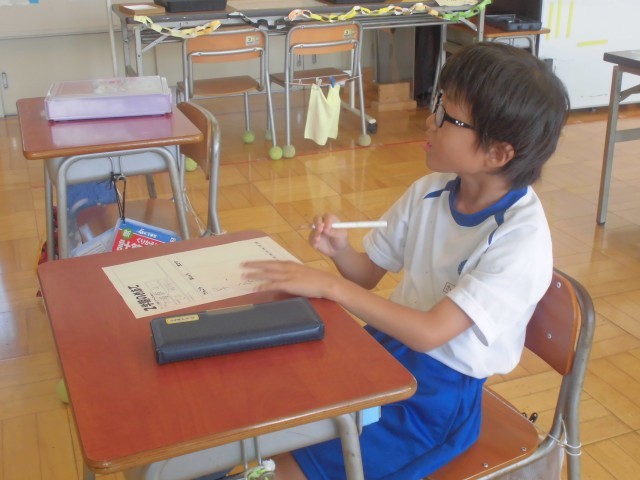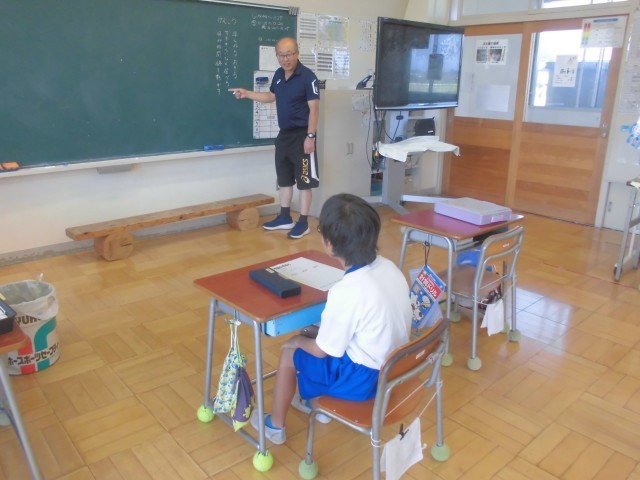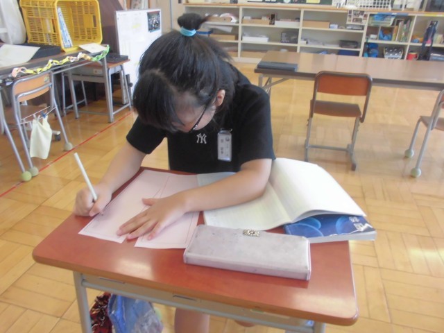 国語は、ひまわりの教室で学習します。学年ごとに集中して取り組んでいるようすです。