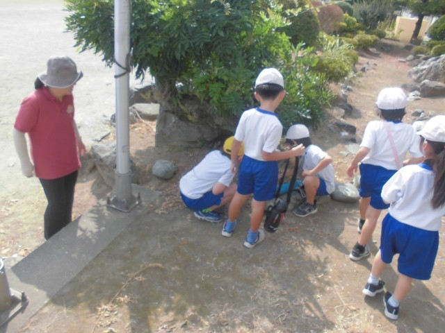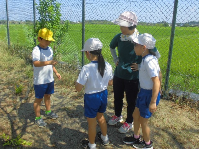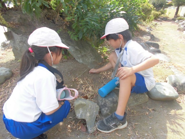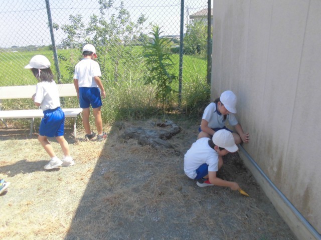 生活科で校庭に虫探しに出ましたが、さすがに暑すぎて虫を見つけるのも大変でした。