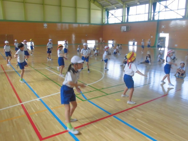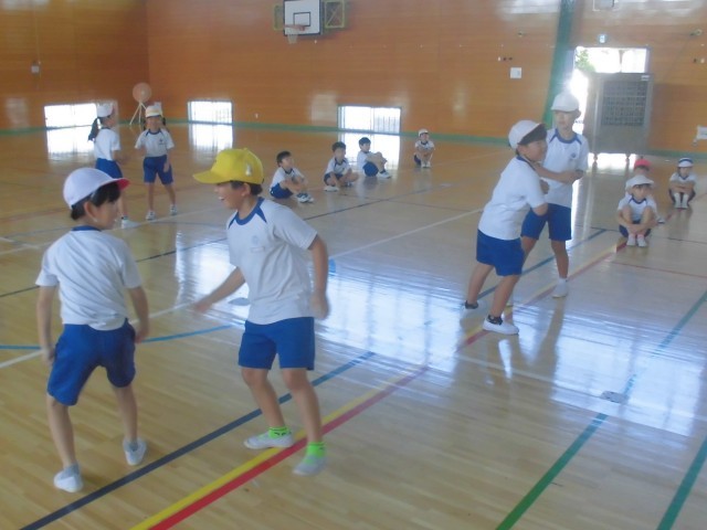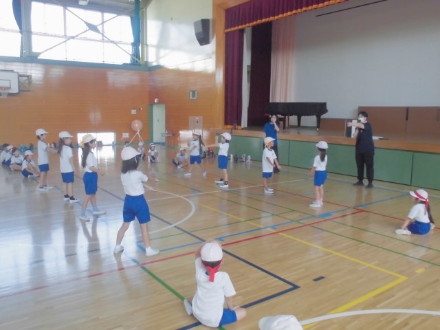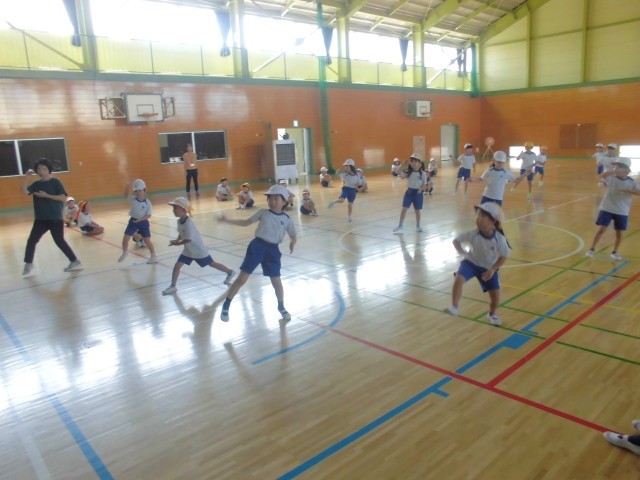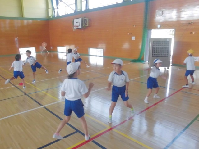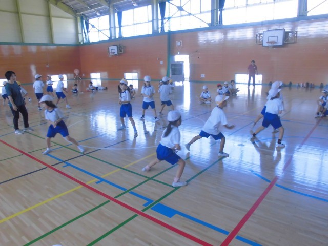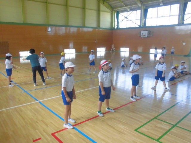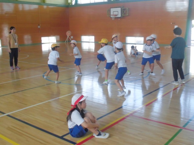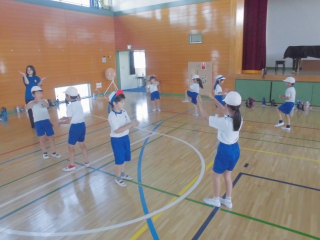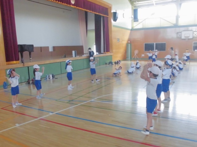 体育館で扇風機をフル稼働して、ダンスの練習です。
