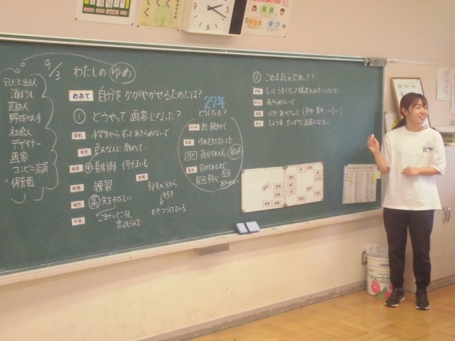 9月3日(水)4年生 道徳 公開日 2025/09/03 更新日 2025/09/03 できごと 「将来の夢」について考えます。自分の考えをしっかりとワークシートに書き、友だちと意見交流し、発表して黒板にまとめていきます。ネームプレートが足りなくなるほど、たくさんの意見が発表されていきました。 +7
