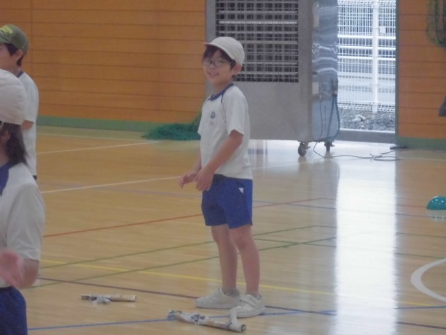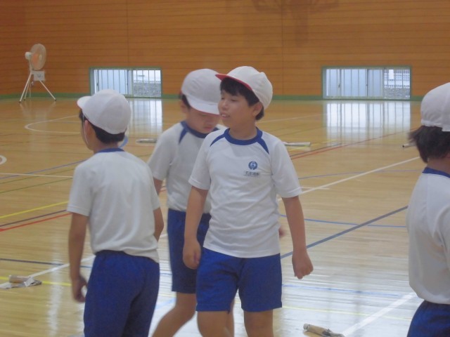 教室で個別の国語の授業のようすと、体育館で運動会の練習を頑張るようすです。