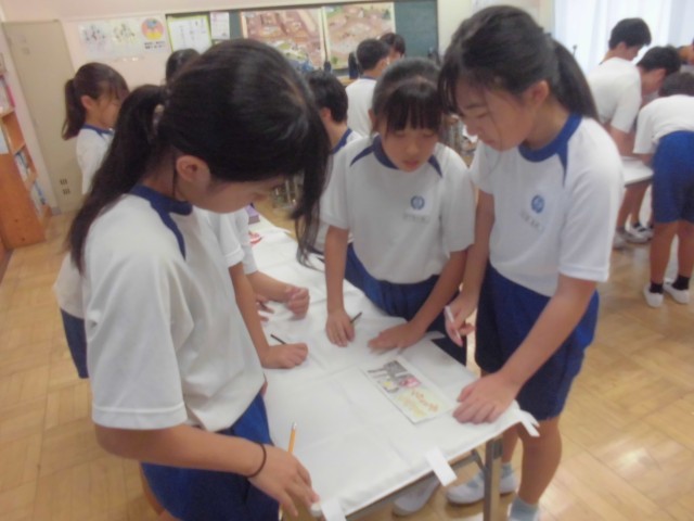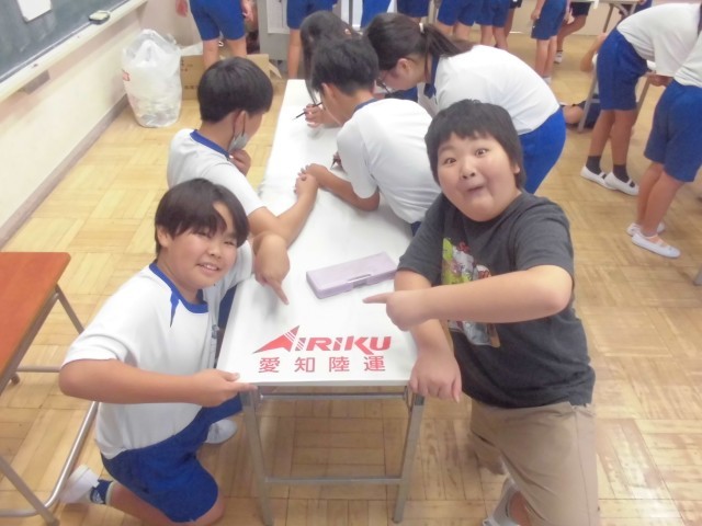 9月5日(金)6年生 図工 公開日 2025/09/05 更新日 2025/09/05 できごと 今年も、愛知陸運株式会社さんからの依頼で、交通安全のぼりの作成が始まりました。仕上がりが楽しみです。 +3