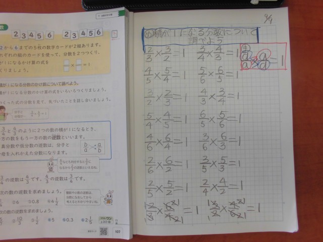 9月9日(火)6年生 算数 公開日 2025/09/09 更新日 2025/09/09 できごと ネームプレートがたくさん貼られ、子どもたちの活躍が伝わります。「逆数」について、しっかりと理解を深めました。 +4