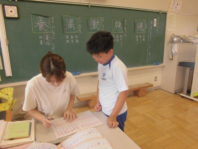 9月10日(水)ひまわり 国語&生活 公開日 2025/09/10 更新日 2025/09/10 できごと 教室で真剣に漢字練習を頑張るようすと、交流学級でアサガオの種の観察をする生活科のようすです。 +3