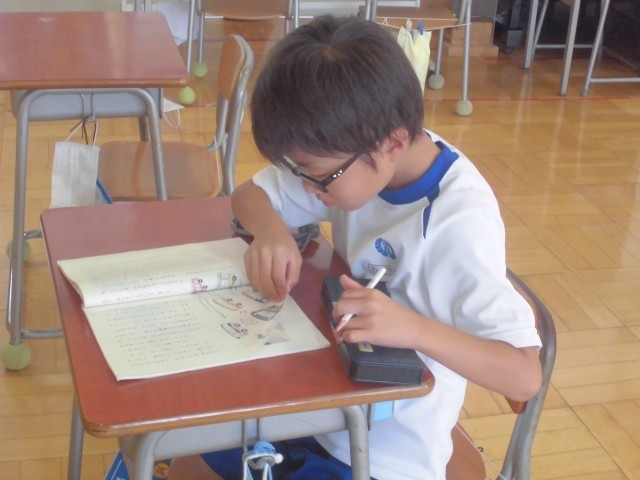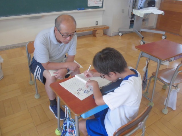 学年別に、教室で個別に落ち着いて国語を頑張るようすです。