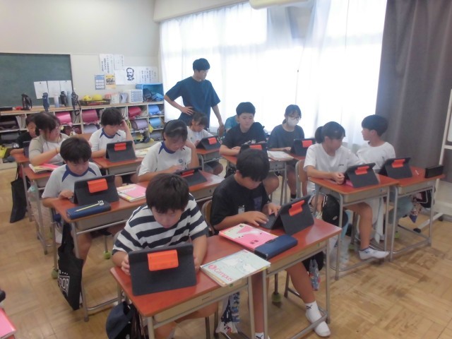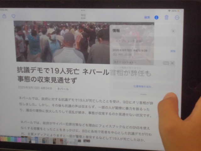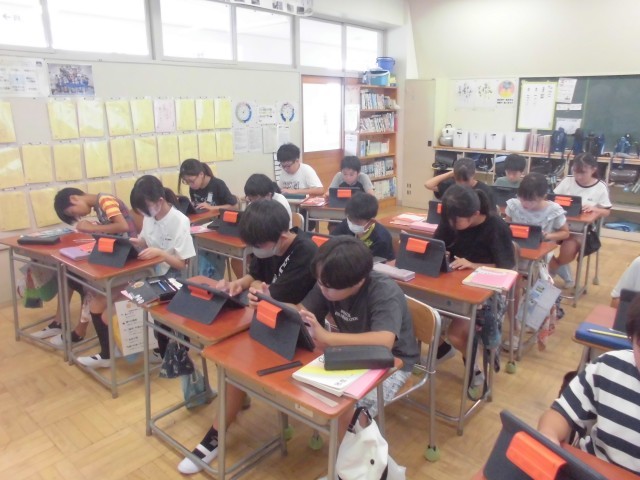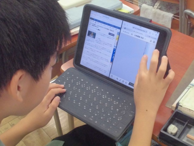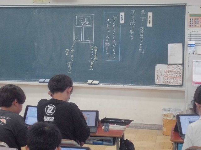 タブレットで最近のネットニュースを検索し、そのニュースの事実と、制作者の意見を区別して正しく読み取る練習です。