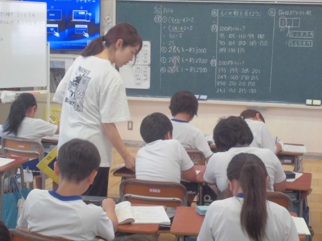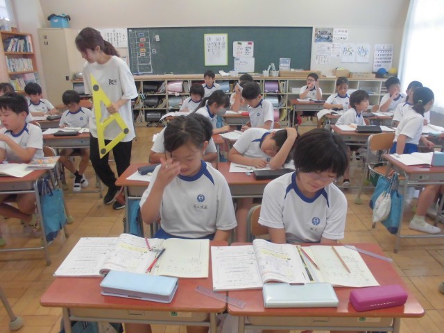 9月10日(水)4年生 算数 公開日 2025/09/10 更新日 2025/09/10 できごと 問題を出すと、先生は常に子どもたちの机を回り進み具合を確認しています。もちろん、個に応じた適切な助言をしていきます。 +4