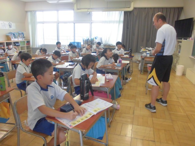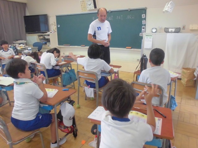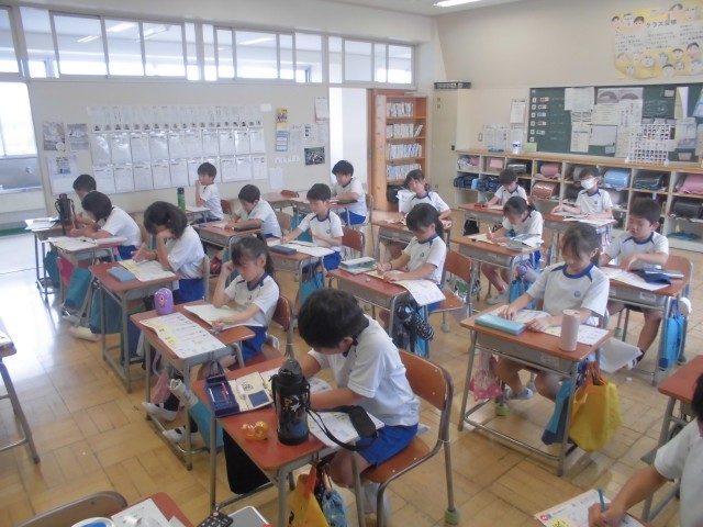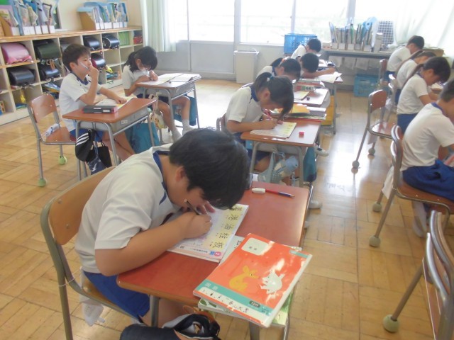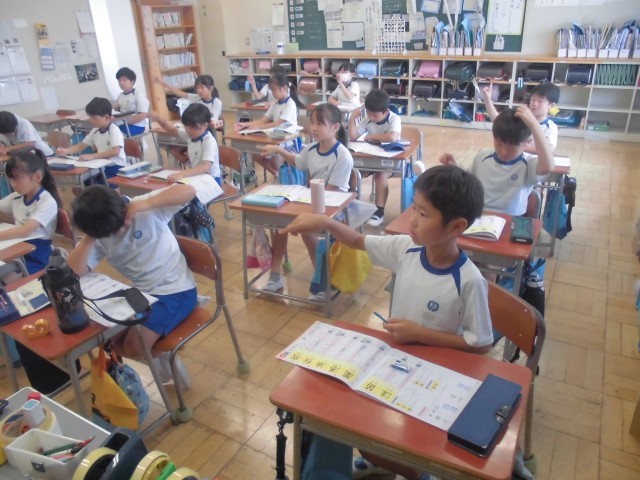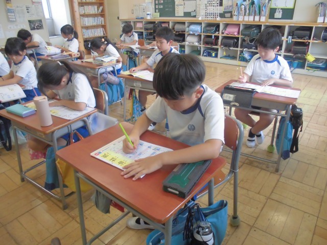 新出漢字の書き順を指でそら書きした後、しっかりとワークで練習して覚えます。