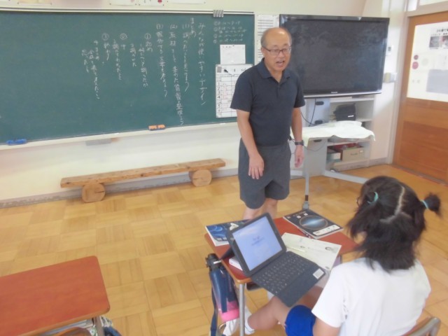 少人数ですが、黒板の板書も個に合わせてあり、タブレットもしっかり活用します。