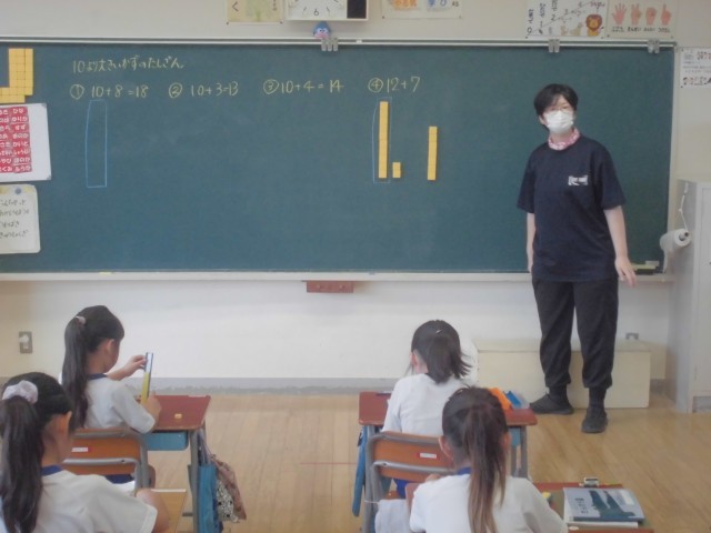 9月11日(木)1年生 算数 公開日 2025/09/11 更新日 2025/09/11 できごと 10より大きい数字の足し算をブロックを操作して考えます。計算ができて起立すると、先生がチェックに来てくれます。 +5