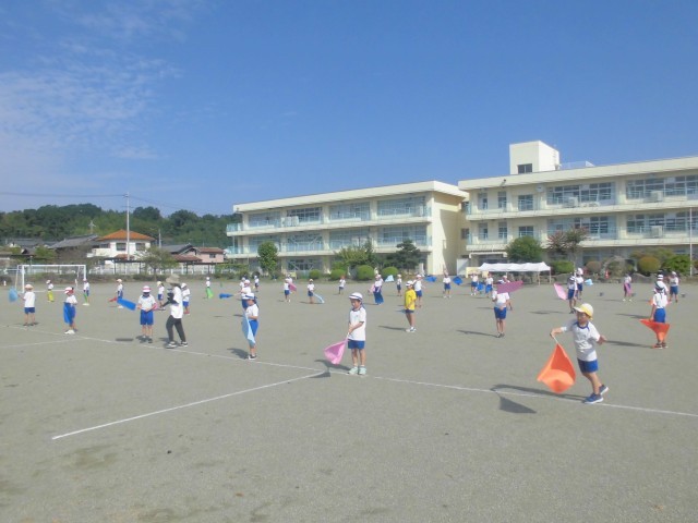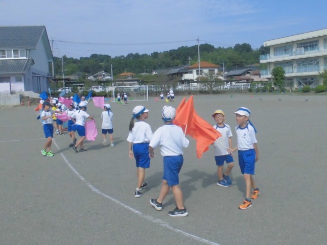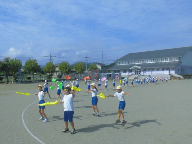 9月16日(火)3、4年生 体育 公開日 2025/09/16 更新日 2025/09/16 できごと 今日から、丸めた新聞紙が本格的なカラーフラッグになりました。青空によく映えるカラフルなフラッグと、楽しそうな子どもたちの姿です。 +7