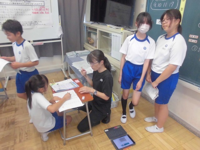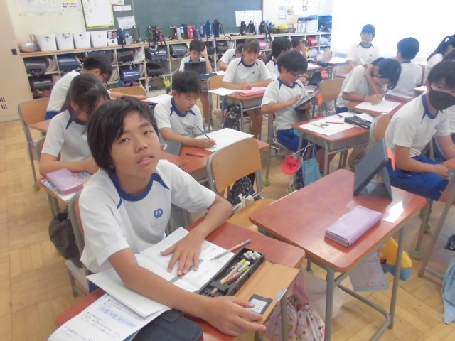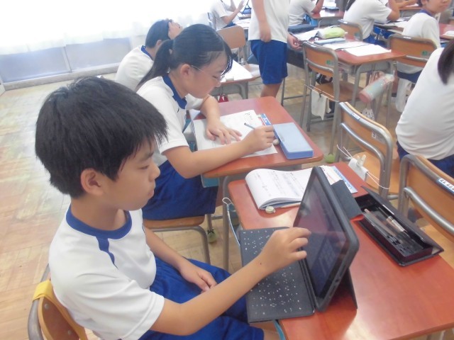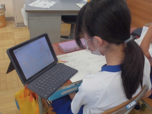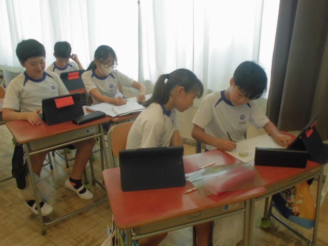 復習タイムです。タブレットでプリントの答え合わせや、ドリル学習など、効果的に活用しています。