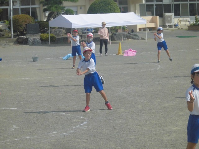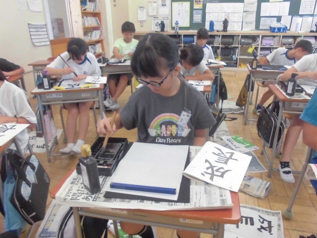 楽しそうに運動会練習を頑張るようすと、交流学級での毛筆のようすです。