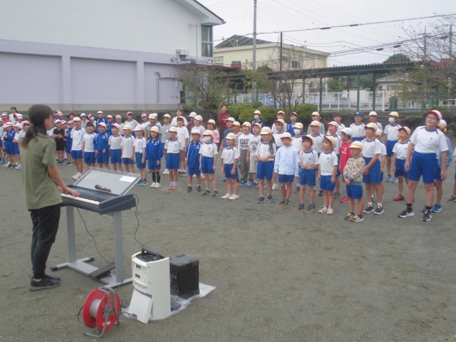 9月19日(金)音楽集会 公開日 2025/09/19 更新日 2025/09/19 できごと 運動会の校庭で元気に歌える練習でもあるので、雨上がりの校庭の水たまりのないところで音楽集会です。9月のお誕生会はもちろん、団ごとに競いながら大きな声で歌い、校歌もバッチリでした。 +7