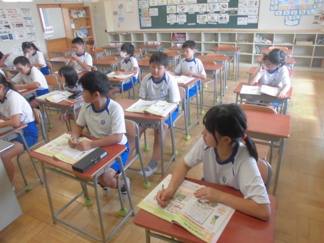 英語のリスニングです。英語を聞き取るのはもちろん難しいですが、教科書の挿絵やALTの先生のジェスチャーをヒントに頑張ります。