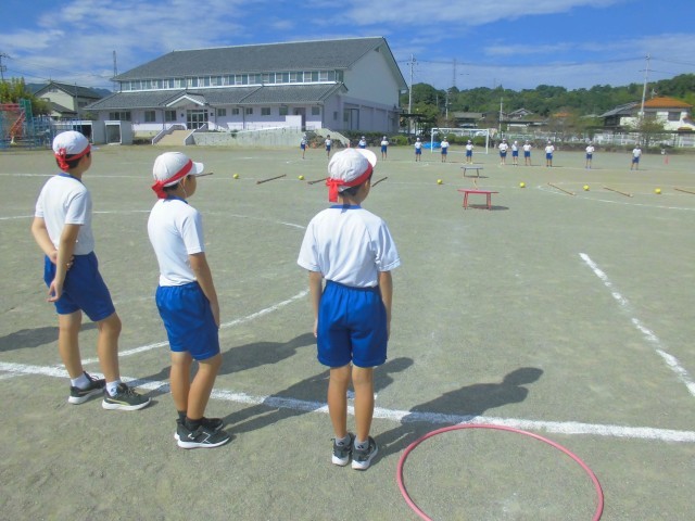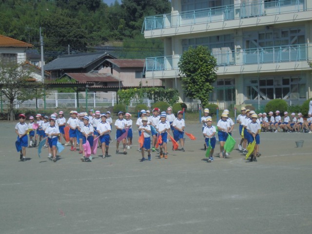 プログラム順に、演技・競技のようすです。入退場の練習がメインでした。