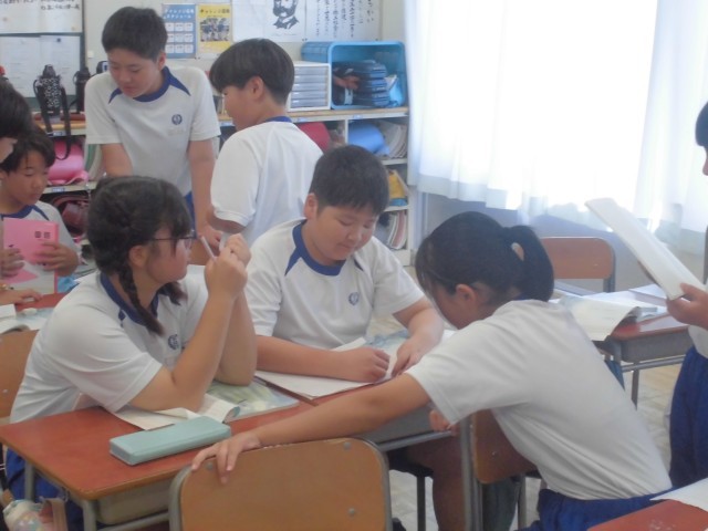 9月26日(金)6年生 国語 公開日 2025/09/26 更新日 2025/09/26 できごと 自分の考えがノートにまとまると、みんなで交流します。同じ考えだと何だか嬉しく感じ、違う考えには感心しあっていました。 +7