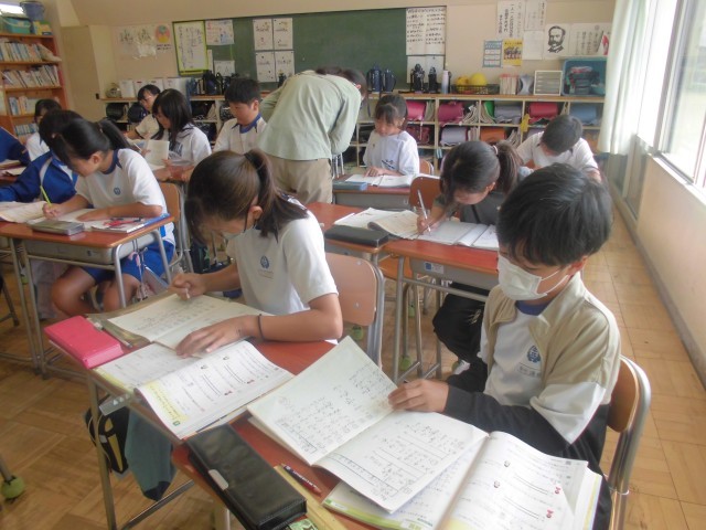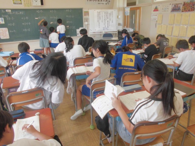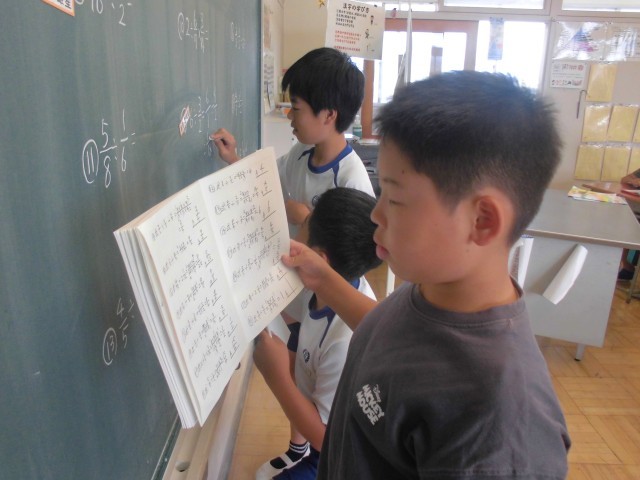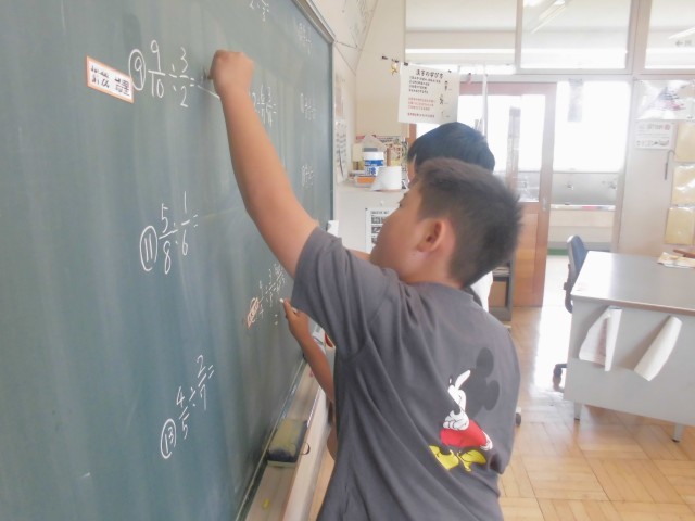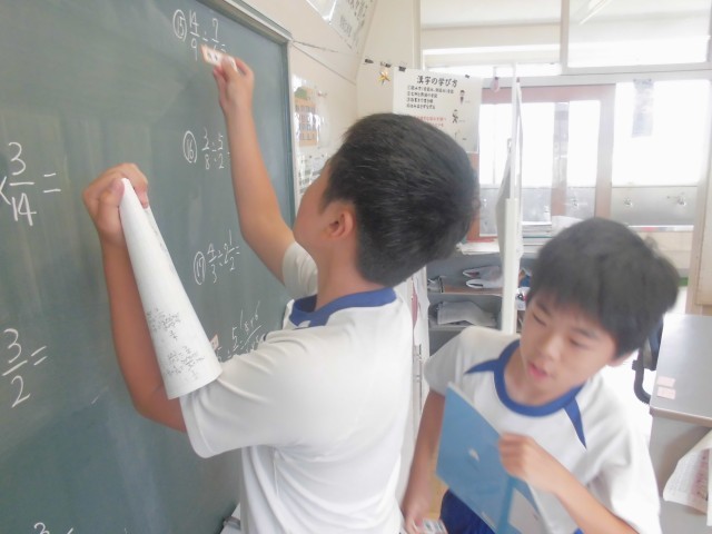 9月30日(火)6年生 算数 公開日 2025/09/30 更新日 2025/09/30 できごと 黒板いっぱいに出題された分数の割り算、ノートで早く終わったら黒板にネームプレーートを貼って、1問解きます。 +6