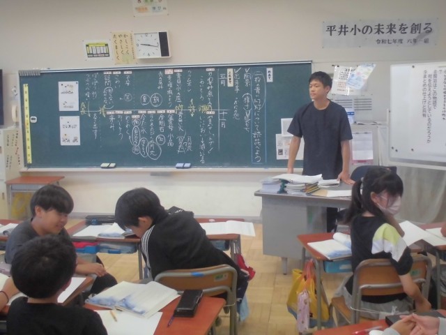 10月1日(水)6年生 国語 公開日 2025/10/01 更新日 2025/10/01 できごと ほぼ全員のネームプレートが貼られ、子どもが活躍していることが分かる板書です。ノートもきれいに書かれ、子どもたちが主体的に意見を発表している姿が印象的な授業でした。 +7