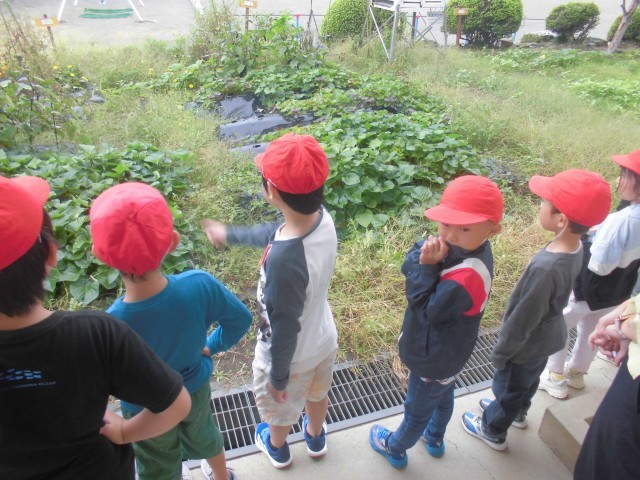 午前中は弱い雨が降っていたので、軒下から秋の植物のようすを観察します。