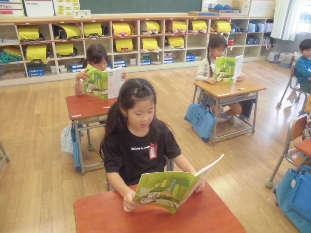 先生の後に続いて、元気よく群読しました。