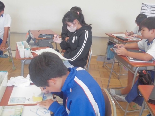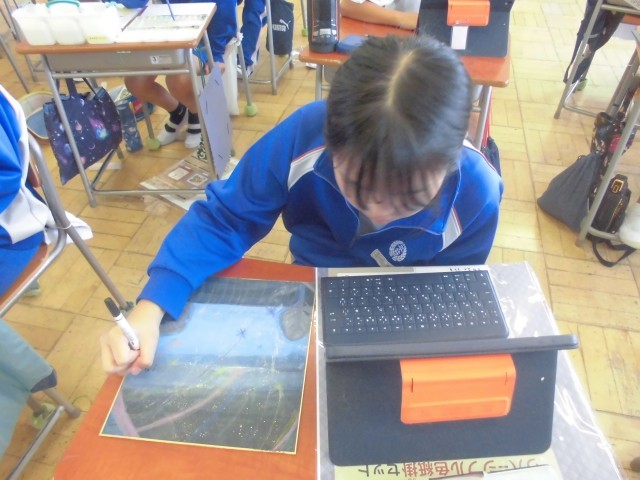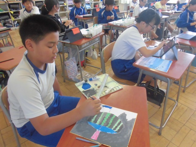 10月2日(木)5年生 図工 公開日 2025/10/02 更新日 2025/10/02 できごと 自分の気に入った詩を、自分オリジナルのイラストと文字で色紙に表現します。味のあるよい作品が仕上がっています。 +3
