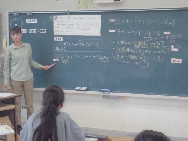 10月3日(金)5年生 算数 公開日 2025/10/03 更新日 2025/10/03 できごと 平均を求めるとき、データに「0」があったらどうする? どのように計算するか、いろいろなパターンで検証していました。 +2