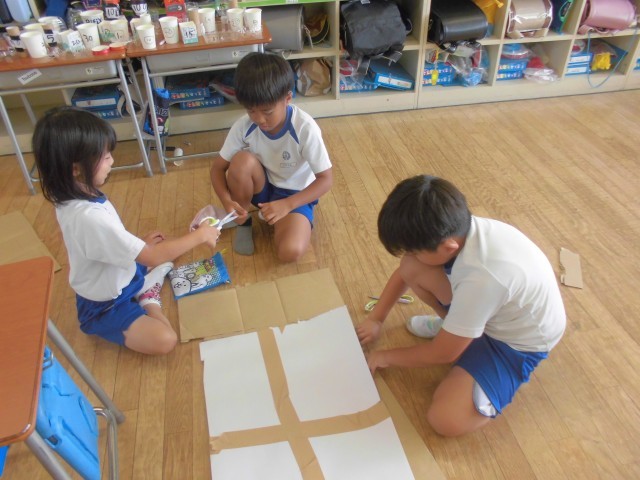 1年生を楽しませる企画を班ごとに考えて、実際にいろいろと製作しています。