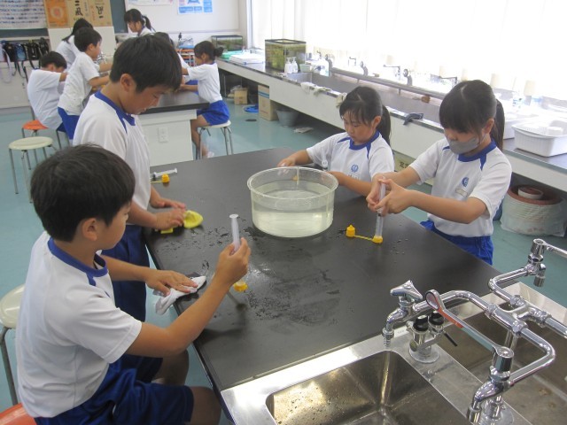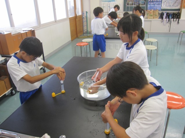 10月3日(金)4年生 理科 公開日 2025/10/03 更新日 2025/10/03 できごと とじこめた水をおして、体積が変わるか調べました。 とじこめた水は、おされても体積は変わらないことがわかりました。 +5