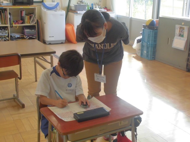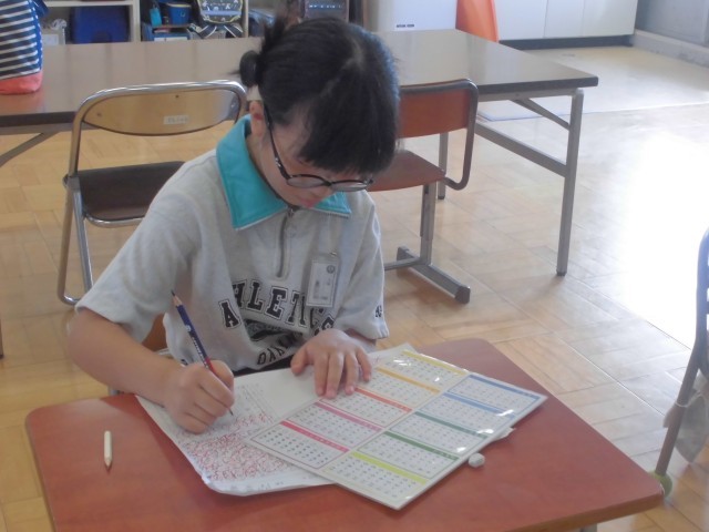 授業の前に、まずは計算の基本であるかけ算九九を100マス計算しておきます。