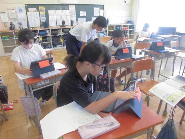 社会科見学の警察署見学のようすと、交流学級での社会のようすです。