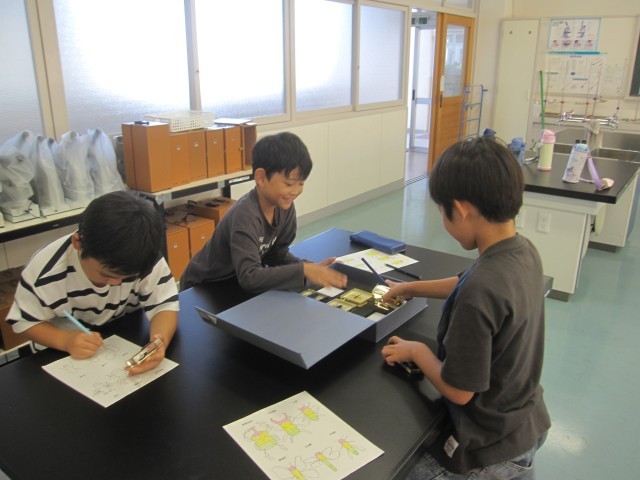 こん虫の成虫のからだは、どれも、頭、むね、はらからできていて、むねにあしが6本あることがわかりました。