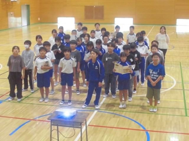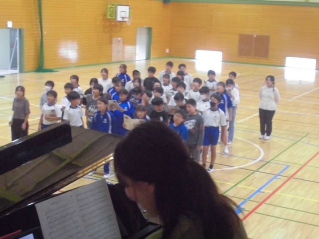 10月9日(木)5、6年生 音楽 公開日 2025/10/09 更新日 2025/10/09 できごと 高学年の合同で体育館で合唱練習です。体育館全体に響き渡ることを意識して、大きな声で歌います。 +6