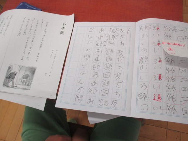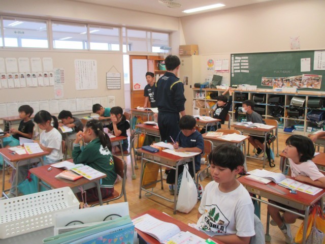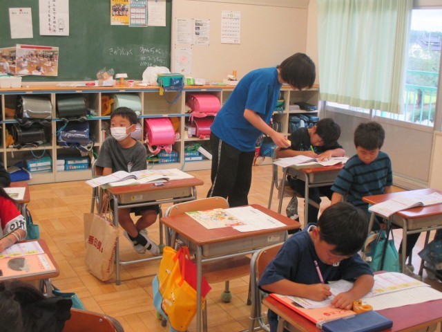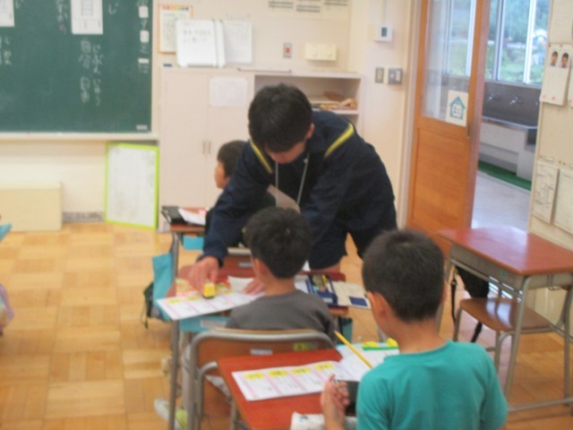新出漢字練習です。チャレンジウィークの中学生にも手伝ってもらいました。