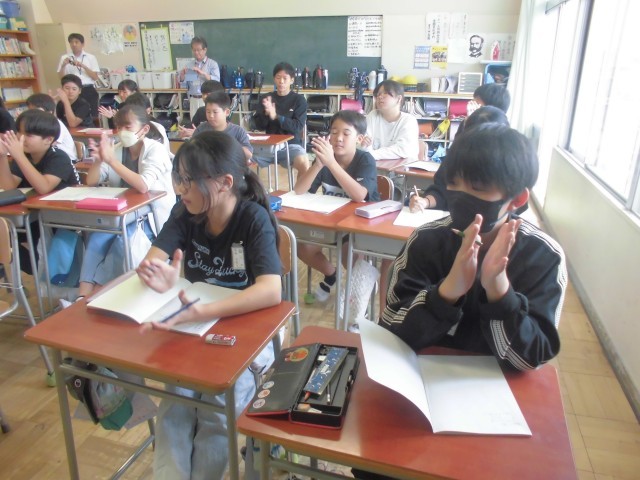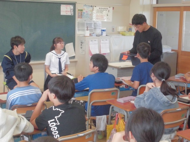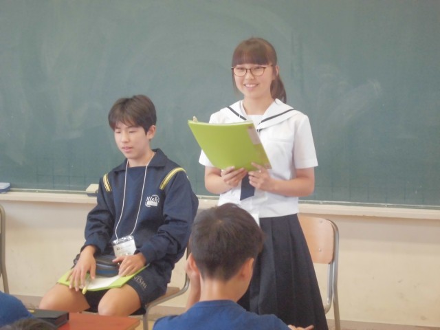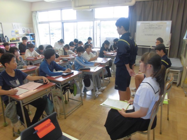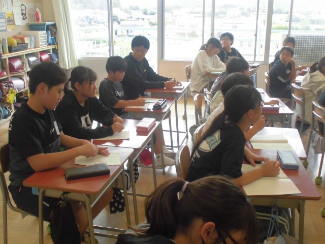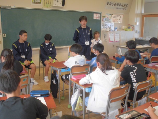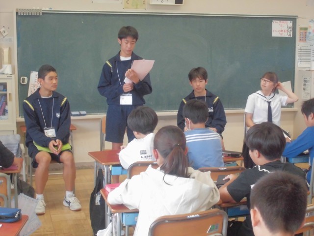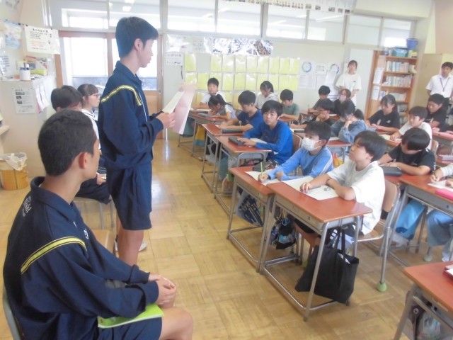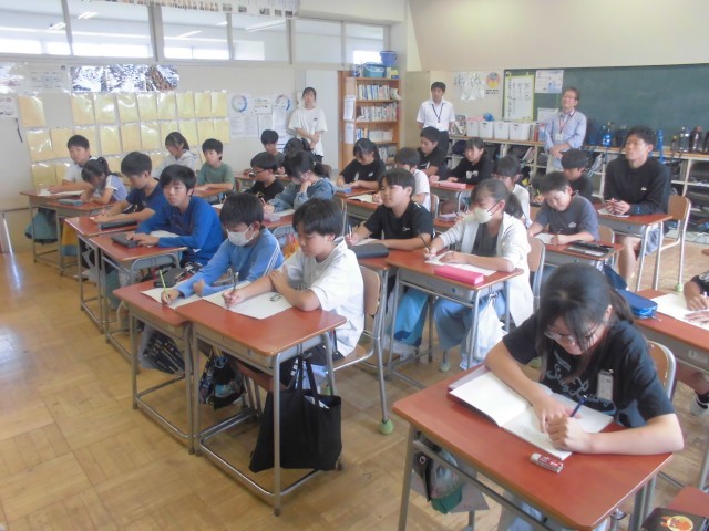 チャレンジウィークも最終日、中学生生活の学習や部活動、行事などを説明してもらいました。メモを取りながらよく聞いて、この後、素朴な質問にもしっかり答えてくれました。