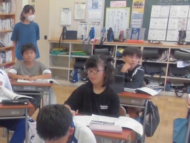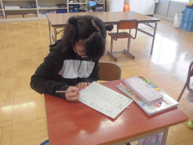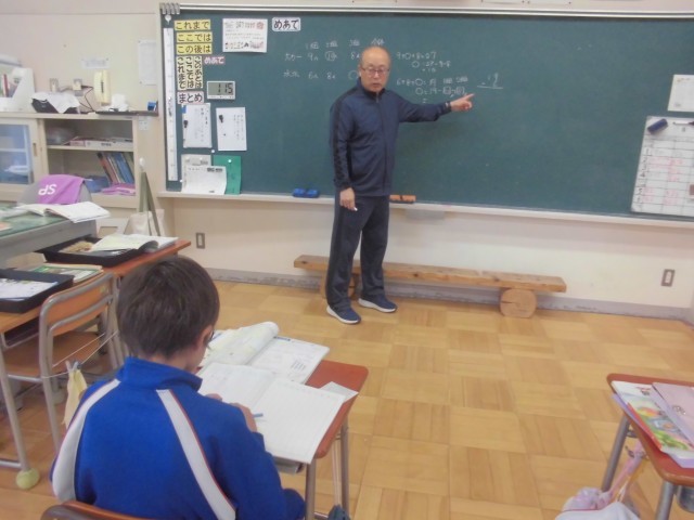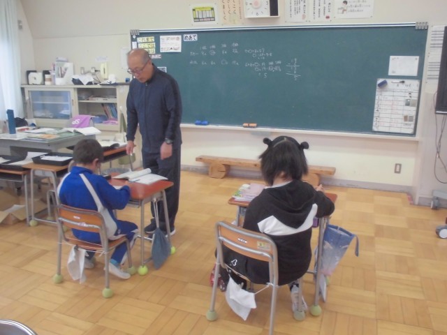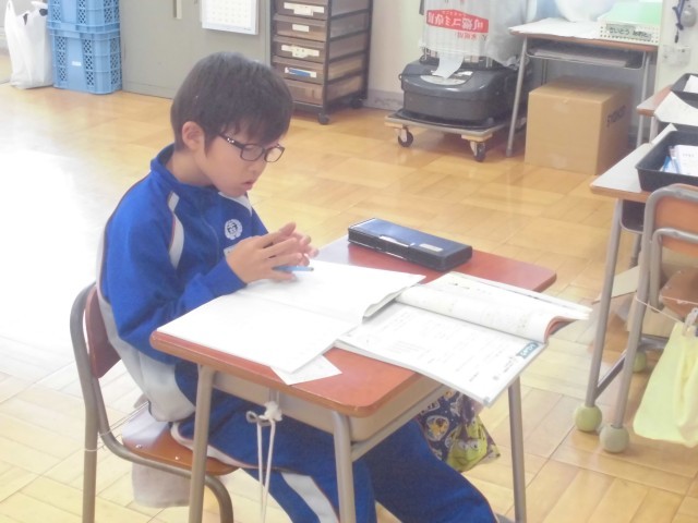 教室での算数のようすと、交流学級での図工・社会のようすです。