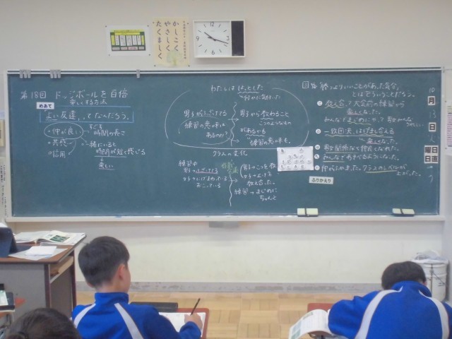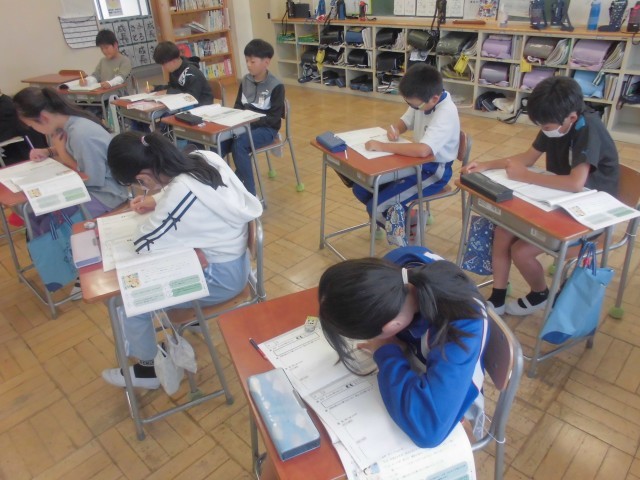 10月14日(火)5年生 道徳 公開日 2025/10/14 更新日 2025/10/14 できごと ドッチボールの読み物資料を通して、「よい友だちとは?」みんなで真剣に考え合いました。それぞれが自分自身の振り返りを書いてまとめている場面です。 +4